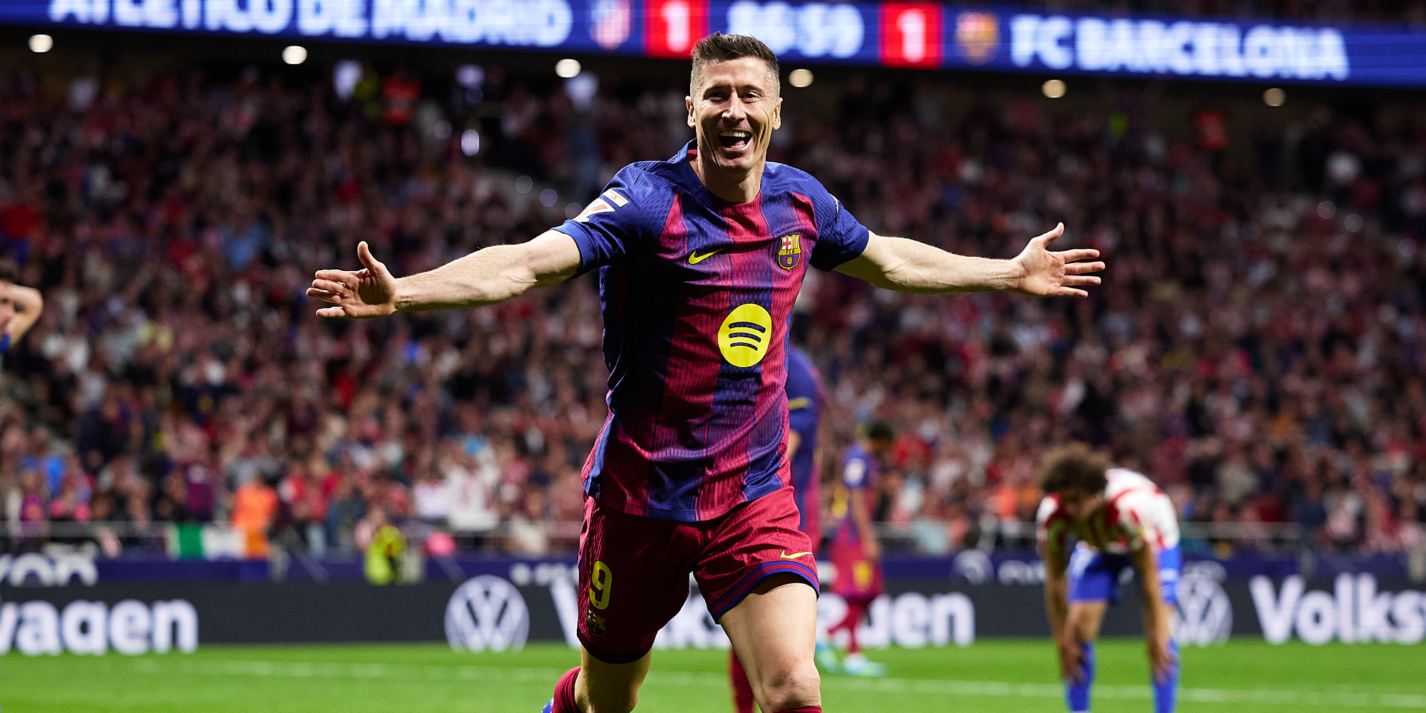 Robert Lewandowski scored a dramatic late winner for Barcelona as they edged Atletico Madrid 2-1 on Saturday to move seven points clear at the top of LaLiga after Real Madrid slipped up.
